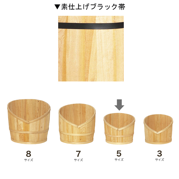 「売ったる!」の売樽を横割りして、正面をV字にカットしてあるので、中の商品にボリューム感が出ます。素仕上げで黒帯タイプです。一番スタンダードな仕様の樽です。