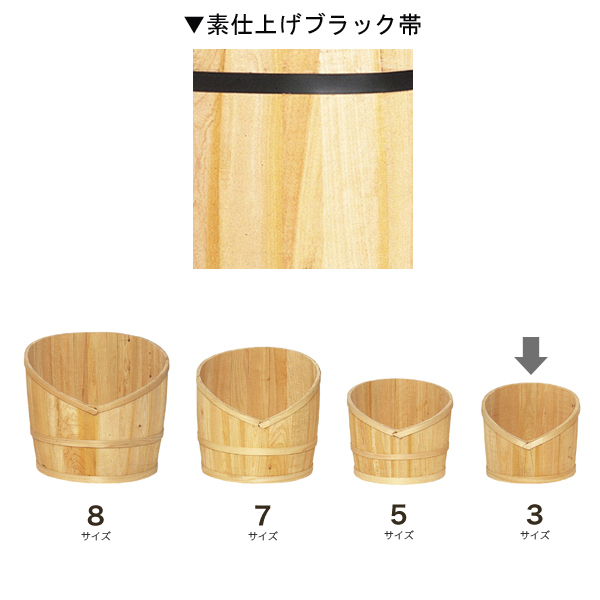 「売ったる!」の売樽を横割りして、正面をV字にカットしてあるので、中の商品にボリューム感が出ます。素仕上げで黒帯タイプです。一番スタンダードな仕様の樽です。